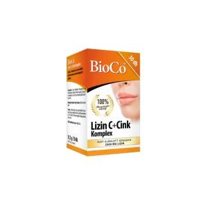 A BioCo Lizin C+Cink Komplex három hatóanyag kombinációja, jelentős mennyiségű L-lizinnel, mely egy esszenciális aminosav. Szervezetünk nem tudja előállítani, a szükséges mennyiséget táplálkozásunkkal fedezhetjük. A BioCo Lizin C+Cink Komplex napi adagja jelentős, 1,5 - 2,5 gramm lizin bevitelt biztosít. A magas dózis miatt a tabletta a lizinre jellemzően sós, enyhén keserű ízű lehet.