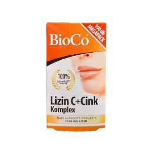A BioCo Lizin C+Cink Komplex három hatóanyag kombinációja, jelentős mennyiségű L-lizinnel, mely egy esszenciális aminosav. Szervezetünk nem tudja előállítani, így a szükséges mennyiséget táplálkozásunkkal fedezhetjük. A BioCo Lizin C+Cink Komplex napi adagja jelentős, 1,5-2,5 gramm lizin bevitelt biztosít. A magas dózis miatt a tabletta a lizinre jellemzően sós, enyhén keserű ízű lehet.