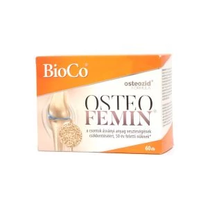 A BioCo OSTEOFEMIN® a hatóanyagok gondos megválogatásával, speciálisan 50 év feletti hölgyek számára készült. 8 féle aktív összetevője közül a kalcium és a D-vitamin hozzájárul a csontok ásványianyag-veszteségének csökkentéséhez a változókor után lévő nőknél.1