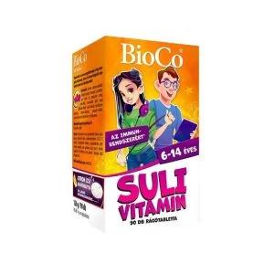 A BioCo® SULI vitamin iskolás korú, 6-14 éves gyermekek számára készült, természetes aromával és 6 féle hatóanyaggal.