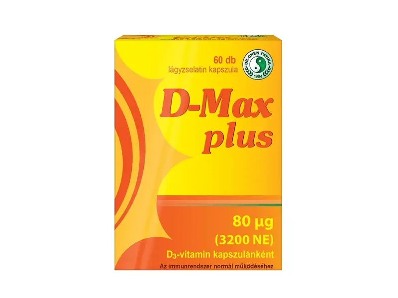 A D-Max Plus magas hatóanyag-tartalmú, kapszulánként 80 µg (3200 NE – nemzetközi egység) D3-vitamint tartalmazó készítmény.