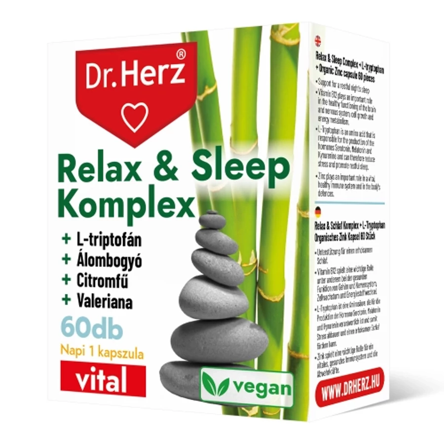 Összetevők: macskagyökér kivonat (Valeriana officinalis L.), citromfű kivonat (Melissa officinalis), komló kivonat (Humulus lupulus L.), golgotavirág kivonat (Passiflora incarnata L.), Álombogyó gyökér kivonat (Withania somnifera L.), cink (cink-citrát), B12-vitamin (Cianokobalamin), tömegnövelő szer (kukoricakeményítő), csomósodást gátló anyag (mikrokristályos cellulóz), kapszulahéj hidroxipropil-metil-cellulóz