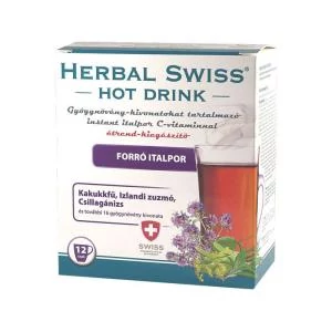 A Herbal Swiss Hot Drink 19 gyógynövényt tartalmazó forró italpor C-vitaminnal segít az immunrendszer megerősítésében, valamint kellemes hatása van a torokra és a hangszálakra. Eredeti svájci receptúra alapján készült, nem tartalmaz koffeint és paracetamolt, így gyógyszerek szedése mellett is alkalmazható.