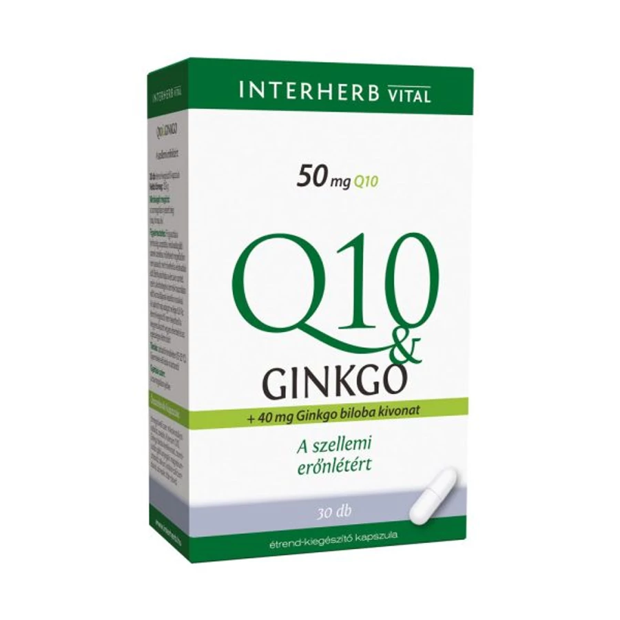 Q10 koenzimet és Ginkgo biloba kivonatot tartalmazó étrend-kiegészítő kapszula. A készítmény népszerű összetevői a szervezet normál élettani folyamatait támogató tápanyagok részeként fogyaszthatók. Kapszulánként 50 mg Q10 koenzimet és 40 mg Ginkgo biloba levélkivonatot tartalmaz.