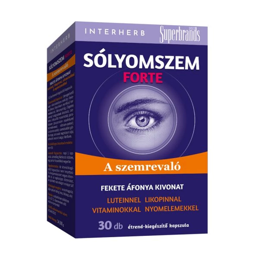 A Sólyomszem FORTE luteint, likopint, vitaminokat és nyomelemeket tartalmazó étrend-kiegészítő, amely a változatos étrend kiegészítésére szolgál. A készítmény cinket, szelént, valamint A- és B2-vitamint is tartalmaz. Az A-vitamin és a B2-vitamin hozzájárul a normál látás fenntartásához. A formulát fekete áfonya-, bársonyvirágból nyert lutein- és paradicsomkivonat (likopinforrás) egészíti ki.