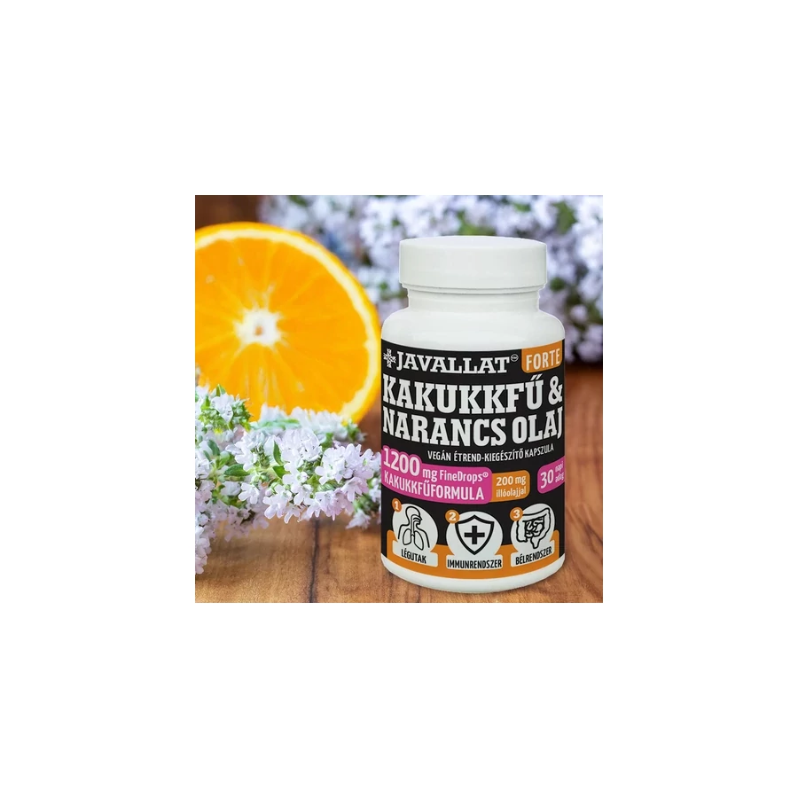 A kakukkfűolajban lévő timol az egyik legerősebb mikróbafejlődést befolyásoló természetes anyag. A kakukkfű egyéb összetevőivel együtt támogatja az alsó és a felső légutak, valamint az immunrendszer egészségét, továbbá jótékonyan hat az emésztőrendszerre is. ⇒ Részletes tájékoztató a terméken megjelenő egészséggel kapcsolatos állításokról.