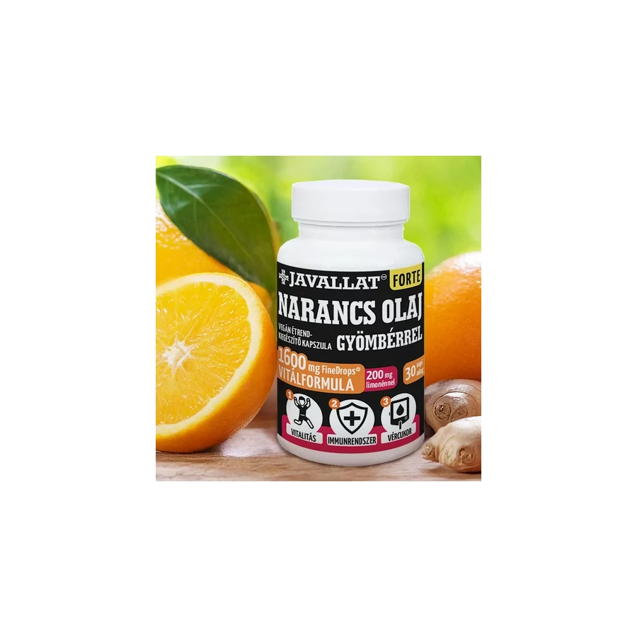- Kimagasló mennyiségű narancs illóolajjal és gyömbérrel a napi adagban, amelyet 200 mg limonénre standardizáltunk!