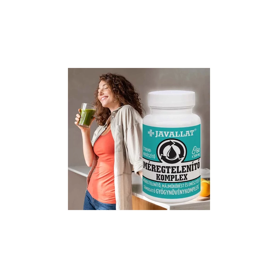 - A komplexbe olyan méregtelenítő hatású, májműködést támogató gyógynövényeket válogattunk össze, amelyek több tucat hatóanyaga egyszerre fejti ki előnyös élettani hatását. A hatóanyagok fontos részét képzik a komplexben lévő antioxidánsok.