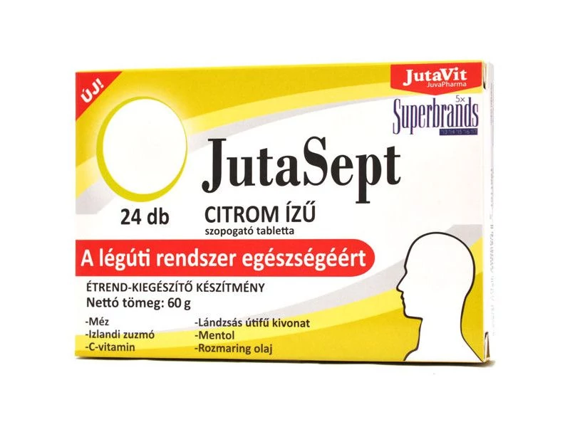 Mézet, izlandi zuzmót, C-vitamint, lándzsás útifű kivonatot, mentolt és rozmaring olajat tartalmazó citrom ízű étrend-kiegészítő szopogató tabletta édesítőszerekkel.