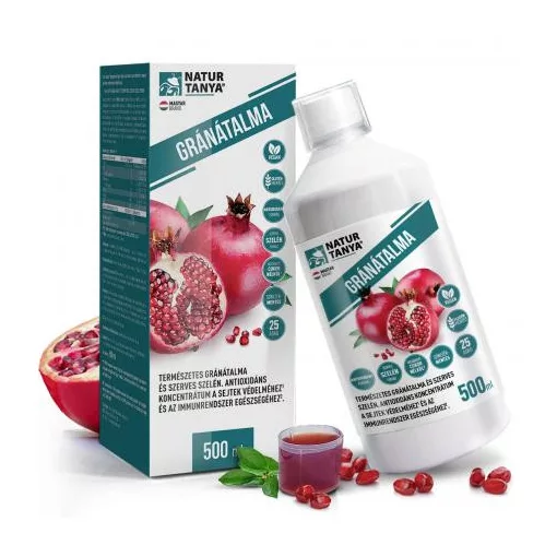 Natur Tanya® 100% gránátalma koncentrátum - antioxidáns ital gránátalma gyümölcs, héj és mag préseléséből, organikus szelénnel. Sejtvédelem és immunrendszer egészség. 500 ml