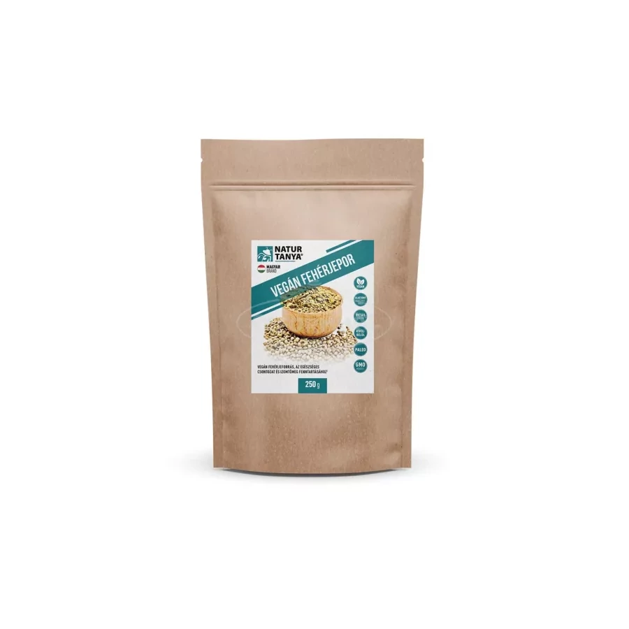 A Vegán Fehérjepor 100%-ban kendermagból készül, fehérjetartalma a marhahúshoz és a bárányhúshoz hasonló mennyiségű fehérjét nyújt. A kendermagban megtalálható növényi fehérje hozzájárul az izomtömeg és az egészséges csontozat fenntartásához. Tökéletes alternatíva, azok számára, akik fehérjebeviteli szükségletüket növényi fehérjeforrással szeretnék fedezni. Ideális vegánok, vegetáriánusok, laktózintoleránsok, tejfehérje érzékenységgel rendelkezők részére.