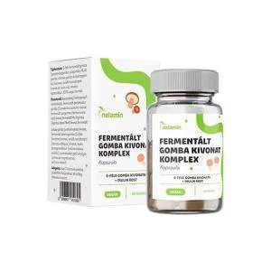 - Fermentált shiitake gomba (Lentinula edodes) kivonat (10% poliszacharid) 125 mg