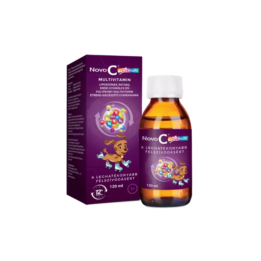 A Novo C® Kids Multi vitaminokat, prebiotikumot és ómega-3-at tartalmaz. A liposzómás formulája miatt hatékonyabban szívódik fel és jobban tud hasznosulni. Retard felszívódású, így egész nap biztosítja a gyermekek számára a szükséges vitaminmennyiséget.