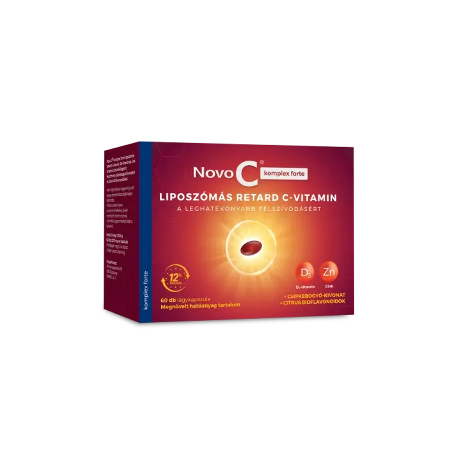 A Novo C® komplex forte liposzómás retard C-vitamin, abban különbözik a hagyományos készítményektől, hogy az immunrendszert támogató hármas hatóanyag-kombinációját - a C-vitamint, D3-vitamint és cinket, az innovatív technológiának köszönhetően olyan természetes foszfolipid réteg veszi körül, amely az emberi sejtek membránjait is alkotja. Ez a védőburok lehetővé teszi, hogy a hatóanyagok könnyebben bejussanak a sejtekbe.