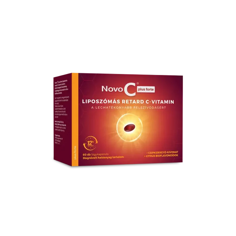 A C-vitamint a szervezet korlátozottan tudja elraktározni, így a bevételt követően a felszívódni nem képes többlet néhány órán belül távozni kényszerül a vizelettel. A Novo C® plus fortéban azonban – a liposzómás technológiának köszönhetően – a C-vitamint természetes foszfolipid burok veszi körül, amely segíti a vitamin hatékony felszívódását.