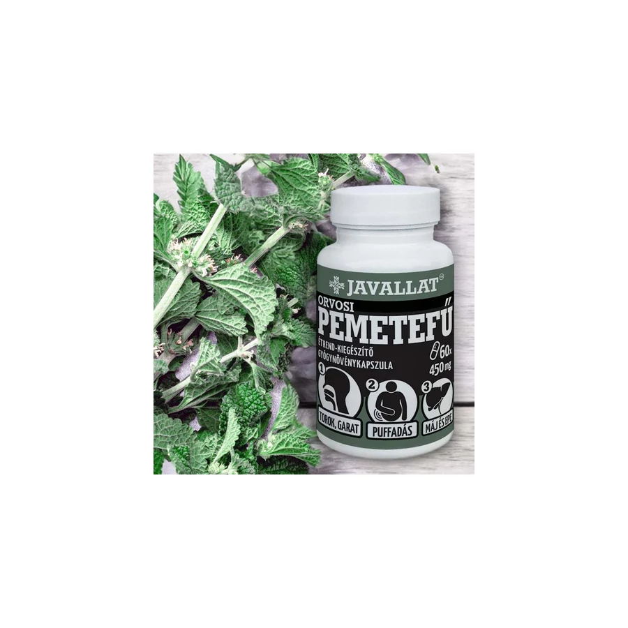 - Az orvosi pemetefű termék fogyasztásának szünetében az alábbi termékek fogyasztásával támogathatja egészségmegőrzését: JAVALLAT® Izlandi zuzmó, JAVALLAT® Kerti kakukkfű