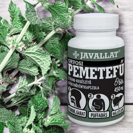 - Kimagasló mennyiségű orvosi pemetefüvet (450 mg) tartalmazó kapszula!