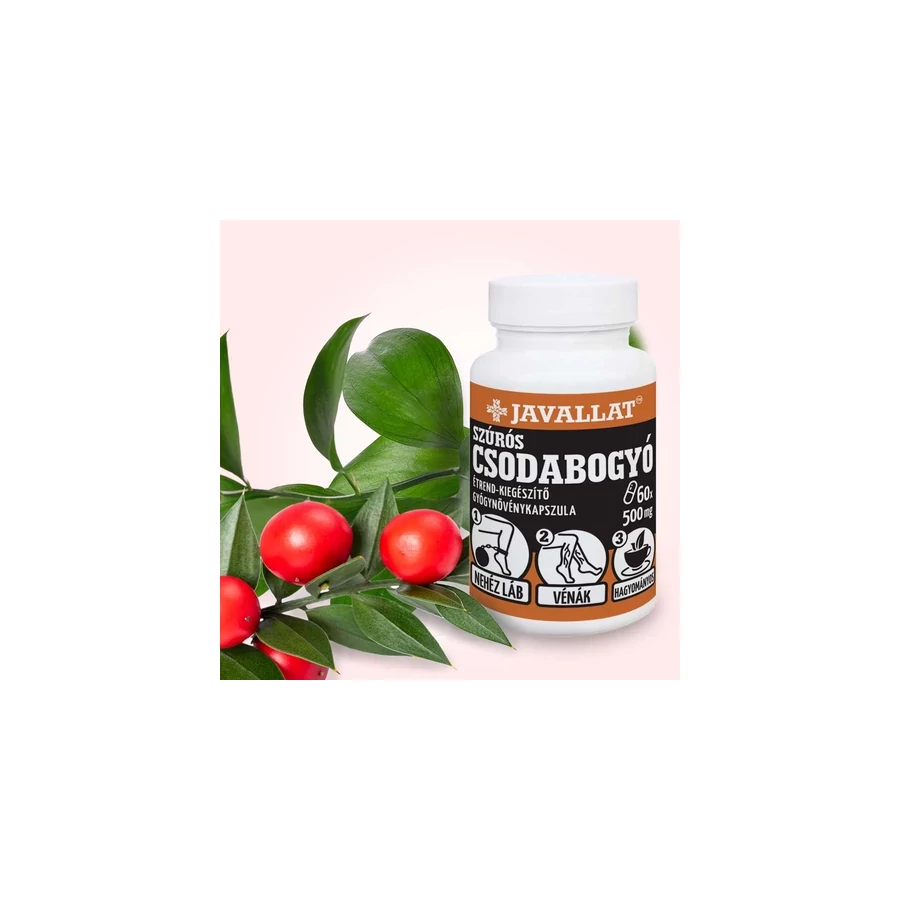 A szúrós csodabogyó kedvező élettani hatásait a benne lévő szteroid szaponinoknak, flavonoidoknak, kumarinoknak köszönheti, amelyek támogatják a vénás keringés egészségét, ezzel a lábak komfortérzetét. ⇒ Részletes tájékoztató a terméken megjelenő egészséggel kapcsolatos állításokról.